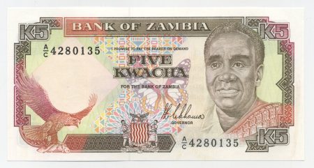 Zambia 5 Kwacha ND 1989 Pick 30.a UNC Uncirculated Banknote