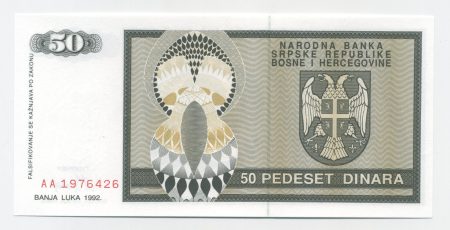 Bosnia and Herzegovina 50 Dinara 1992 Pick 134.a UNC Uncirculated Banknote