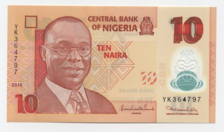 Nigeria 10 Naira 2010 Pick 39 UNC Uncirculated Banknote