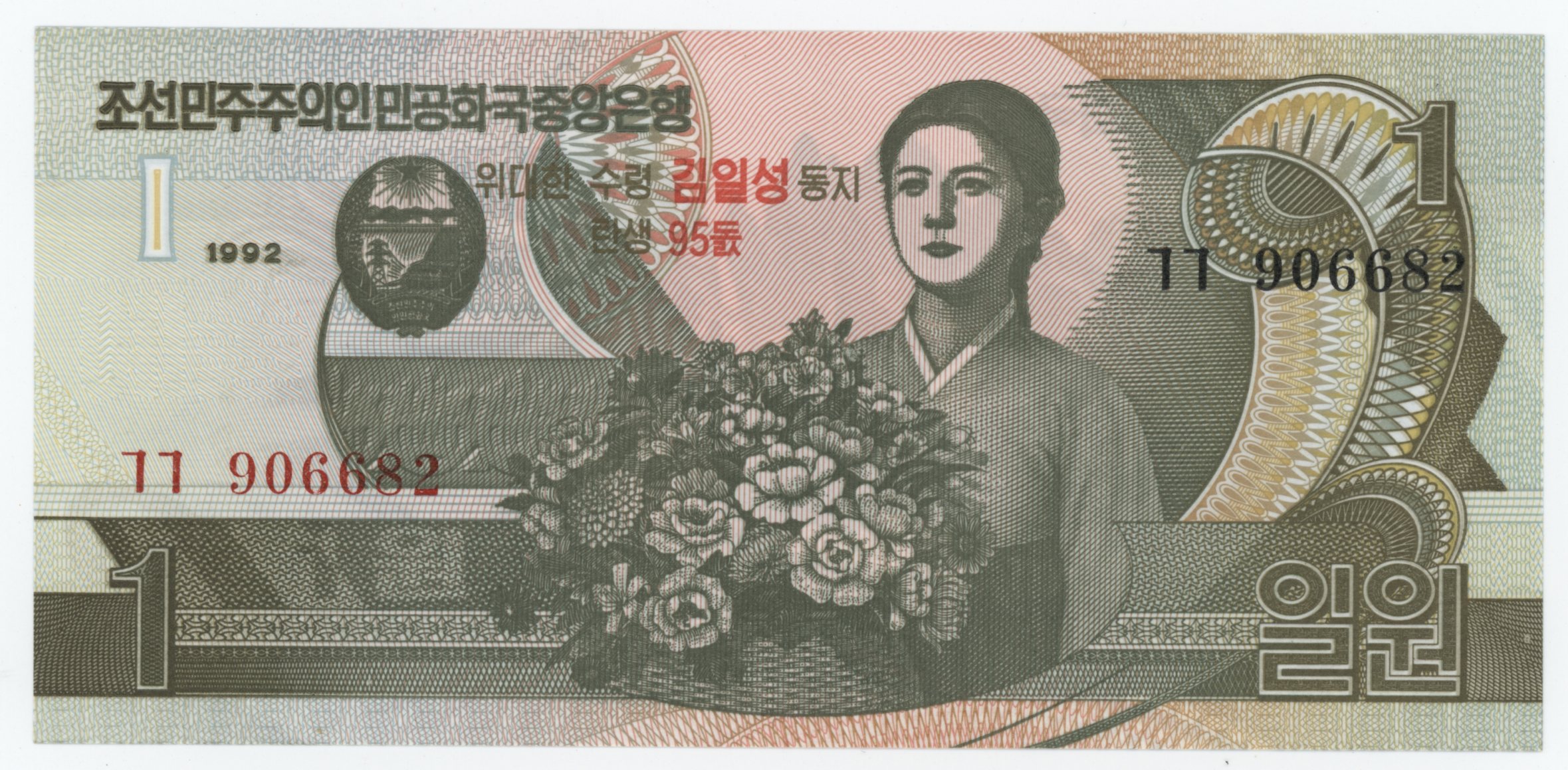 Korea, North 1 Won 1992 Pick 49 UNC Uncirculated Banknote 95th Birthday quantity