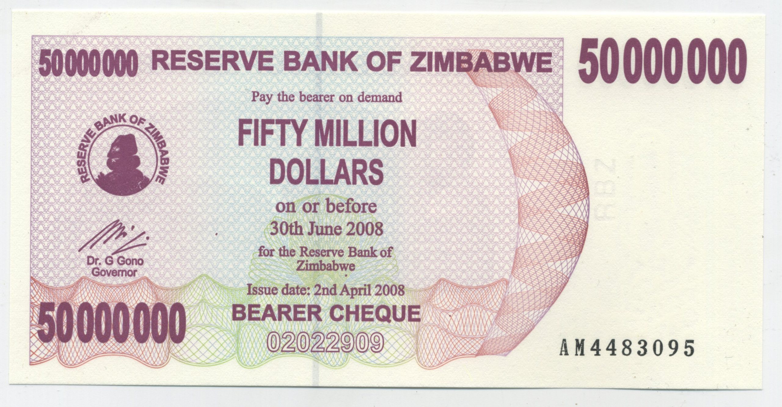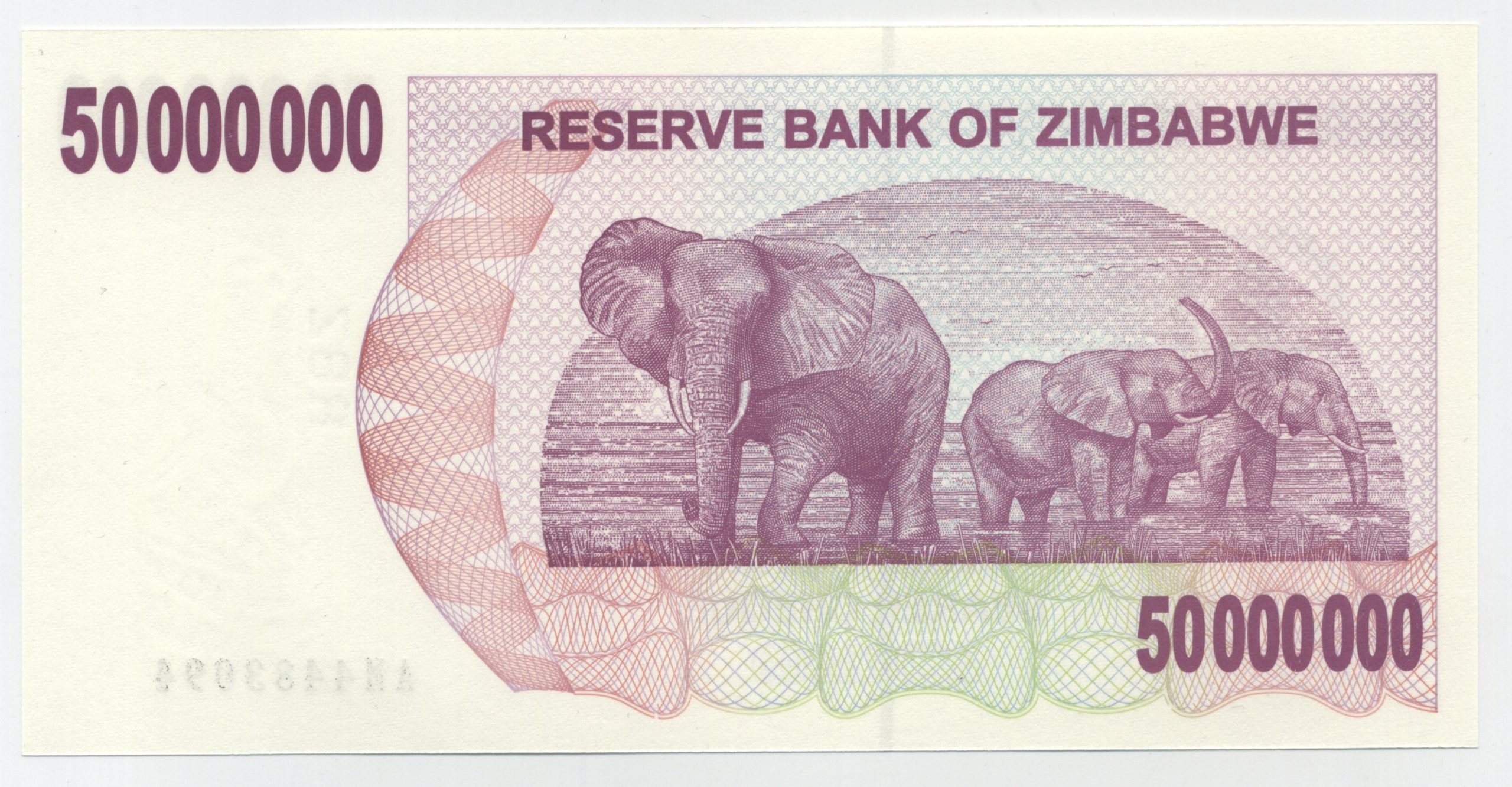 Zimbabwe 50000000 Dollars 30-7-2008 Pick 57 aUNC Almost Uncirculated Banknote